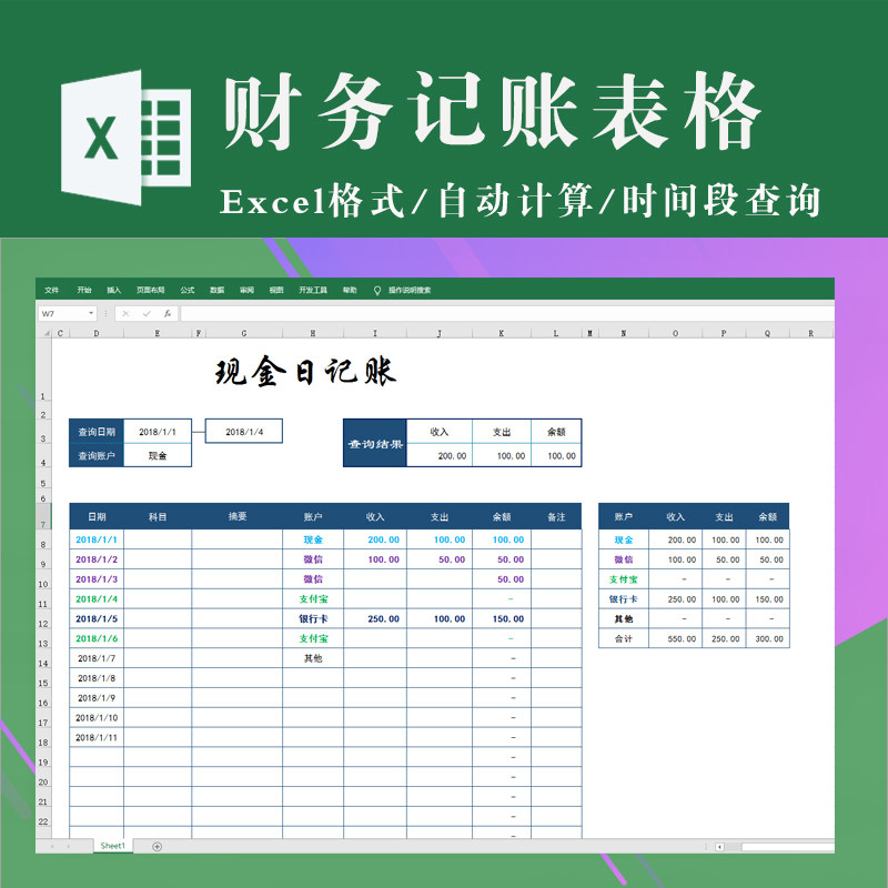 Excel現金銀行明細賬日記賬自動統計表存款管理出納表格公式系統