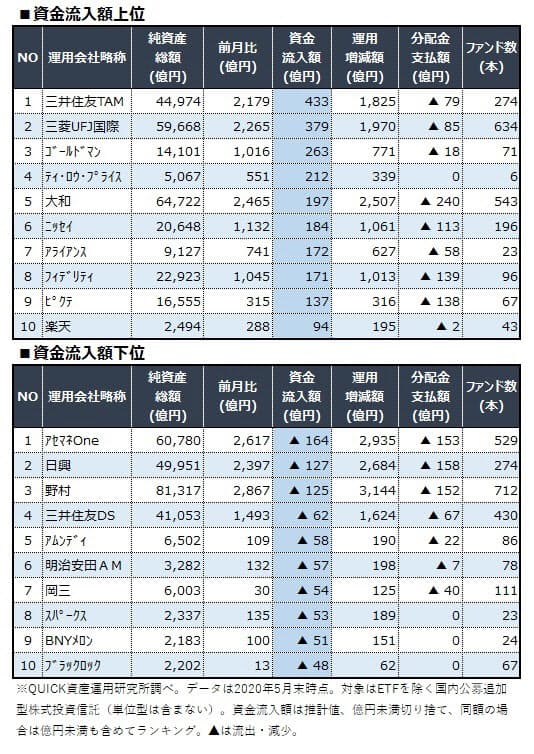 運用会社別の資金流入額 5月も三井住友tが首位 日本経済新聞